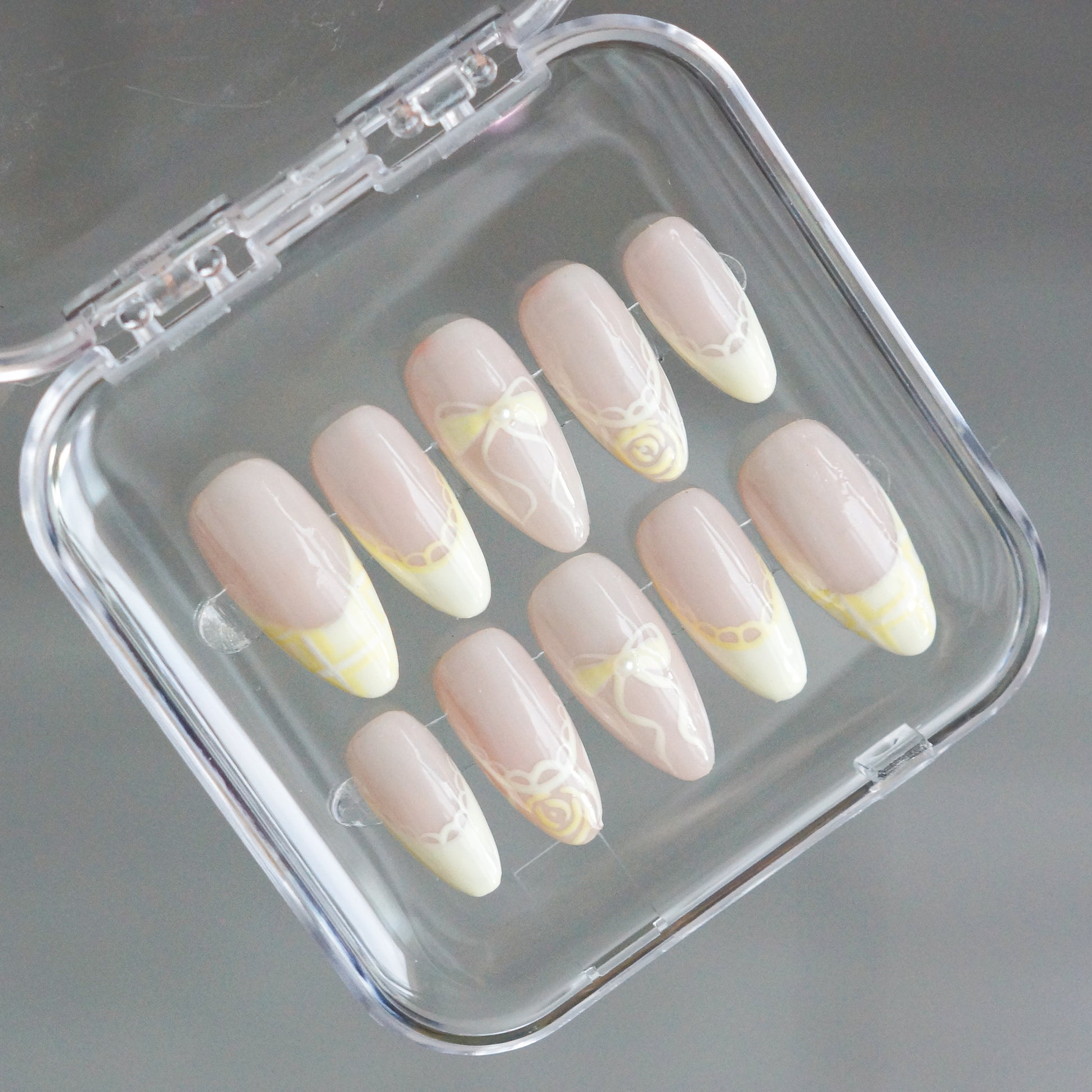 En général, une pose de press-on nails dure environ deux semaines, si tu prends soin de tes ongles. Mais tu peux tout à fait les retirer avant, pour changer de style quand tu en as envie, sans abîmer tes ongles naturels. L’avantage, c’est que tu peux alterner facilement et en toute sécurité.