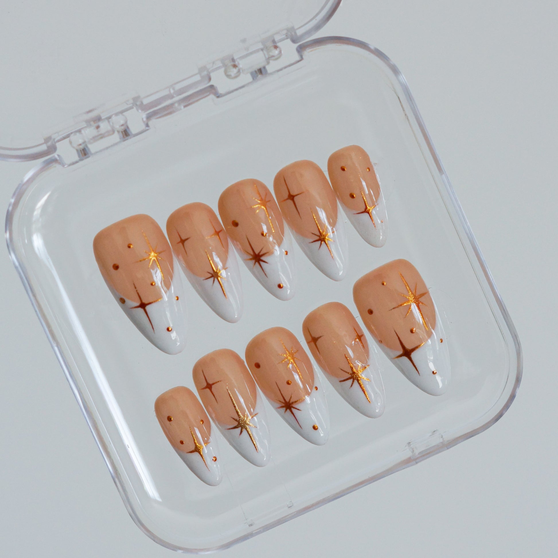 En général, une pose de press-on nails dure environ deux semaines, si tu prends soin de tes ongles. Mais tu peux tout à fait les retirer avant, pour changer de style quand tu en as envie, sans abîmer tes ongles naturels. L’avantage, c’est que tu peux alterner facilement et en toute sécurité.