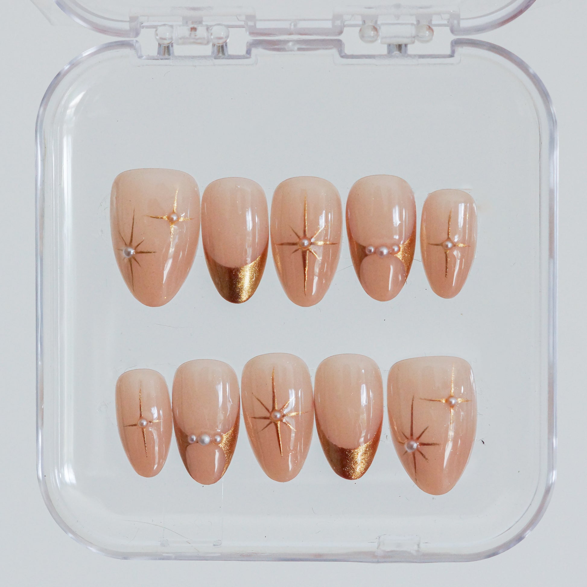 En général, une pose de press-on nails dure environ deux semaines, si tu prends soin de tes ongles. Mais tu peux tout à fait les retirer avant, pour changer de style quand tu en as envie, sans abîmer tes ongles naturels. L’avantage, c’est que tu peux alterner facilement et en toute sécurité.