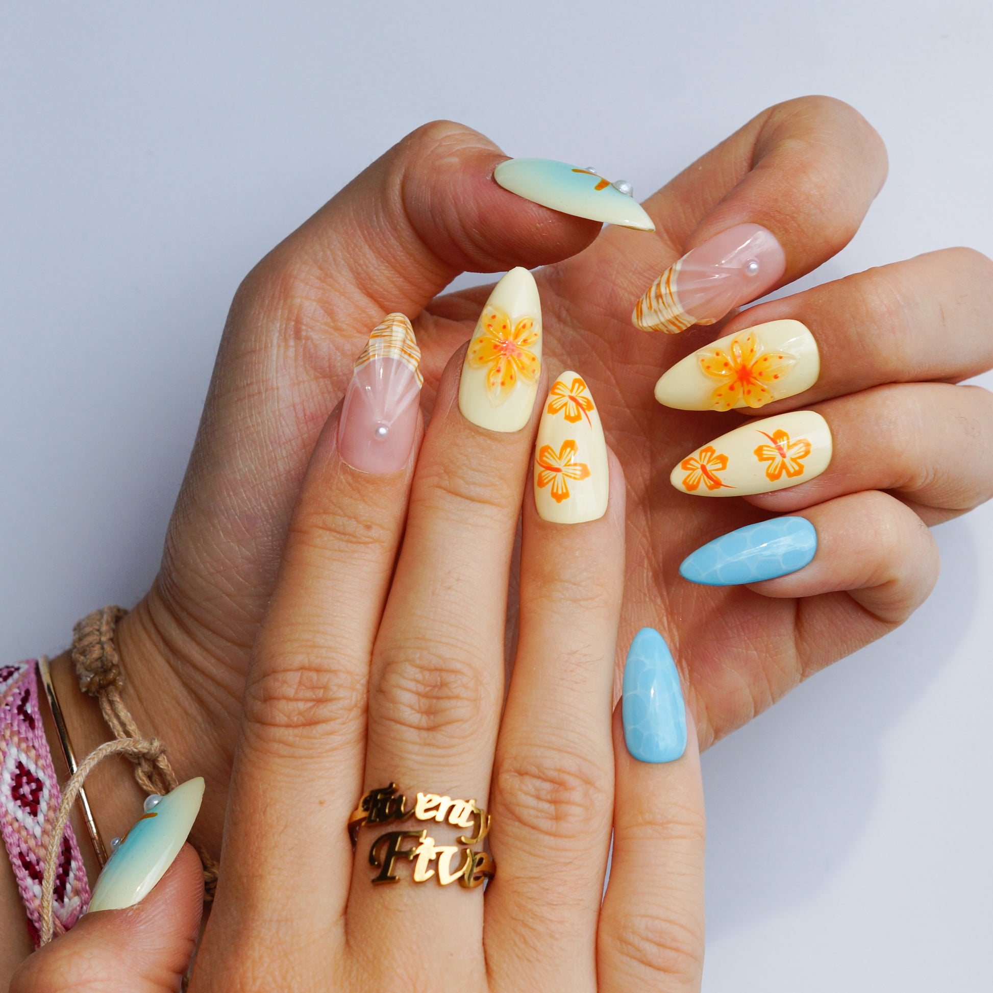 Petite note à prendre en compte : étant donné que je crée chaque set de press-on-nails à la main, il est possible que de légères variations apparaissent dans les designs. Parfois, les petits détails comme les stickers ou les motifs que je dessine peuvent légèrement varier selon la taille de l'ongle (XS, S, M, L). Rassure-toi, ces ajustements seront faits avec soin pour préserver l'univers artistique et le look général du set ! Rien ne change vraiment, juste des petites adaptations pour que tout soit parfait sur tes ongles. 😊