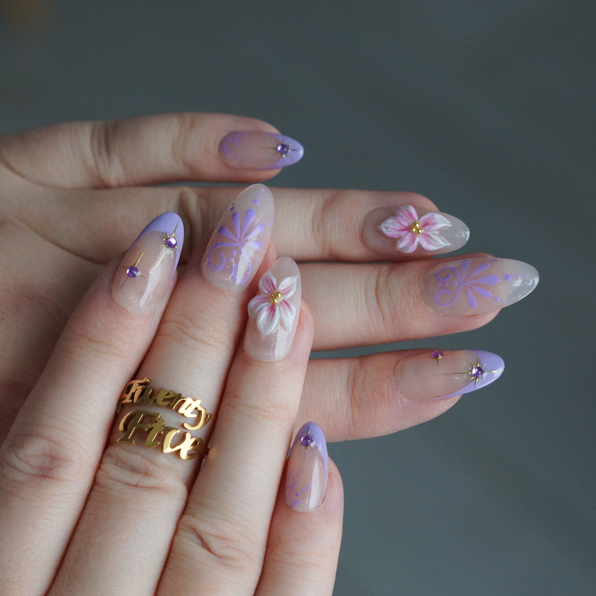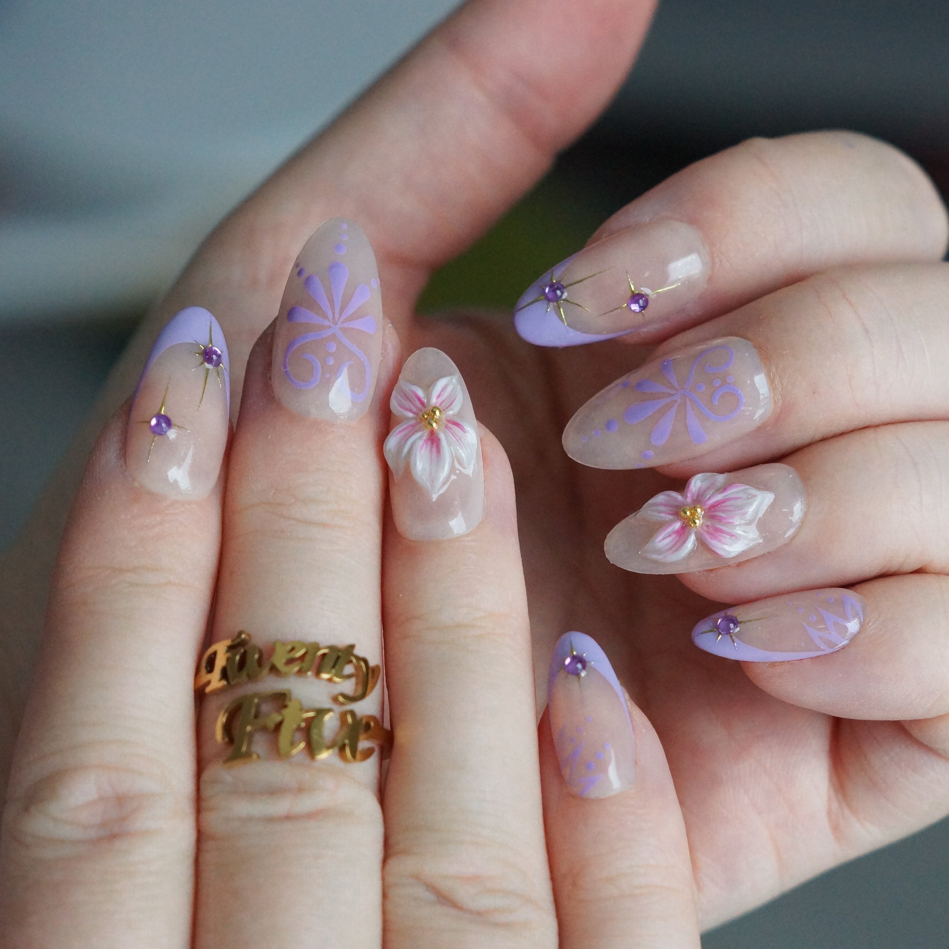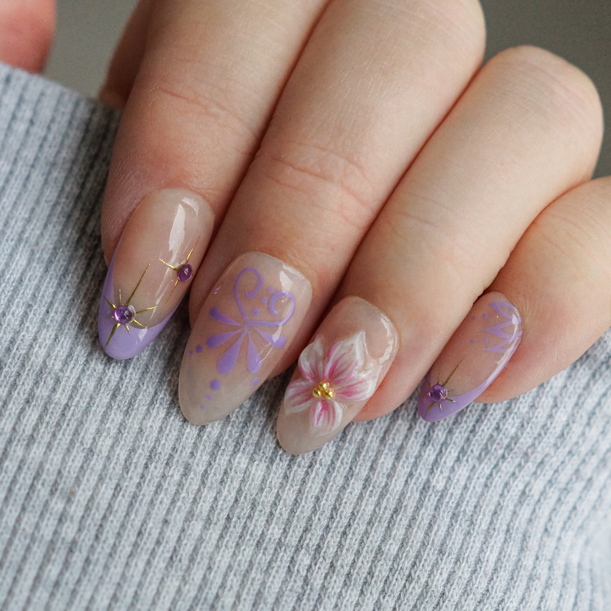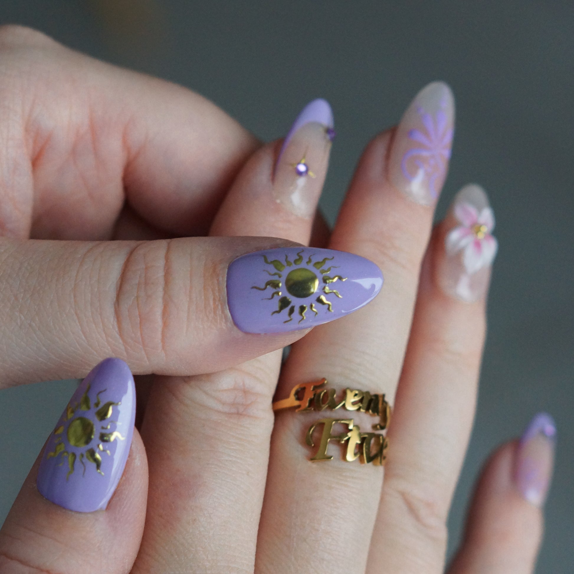Raiponce est un set de press-on nails qui s’inspire d’une princesse aux cheveux dorés et magiques, enfermée dans sa tour mais pleine de rêves d’aventure. Une manucure idéale pour celles qui veulent apporter une touche de magie et d’élégance au bout des doigts