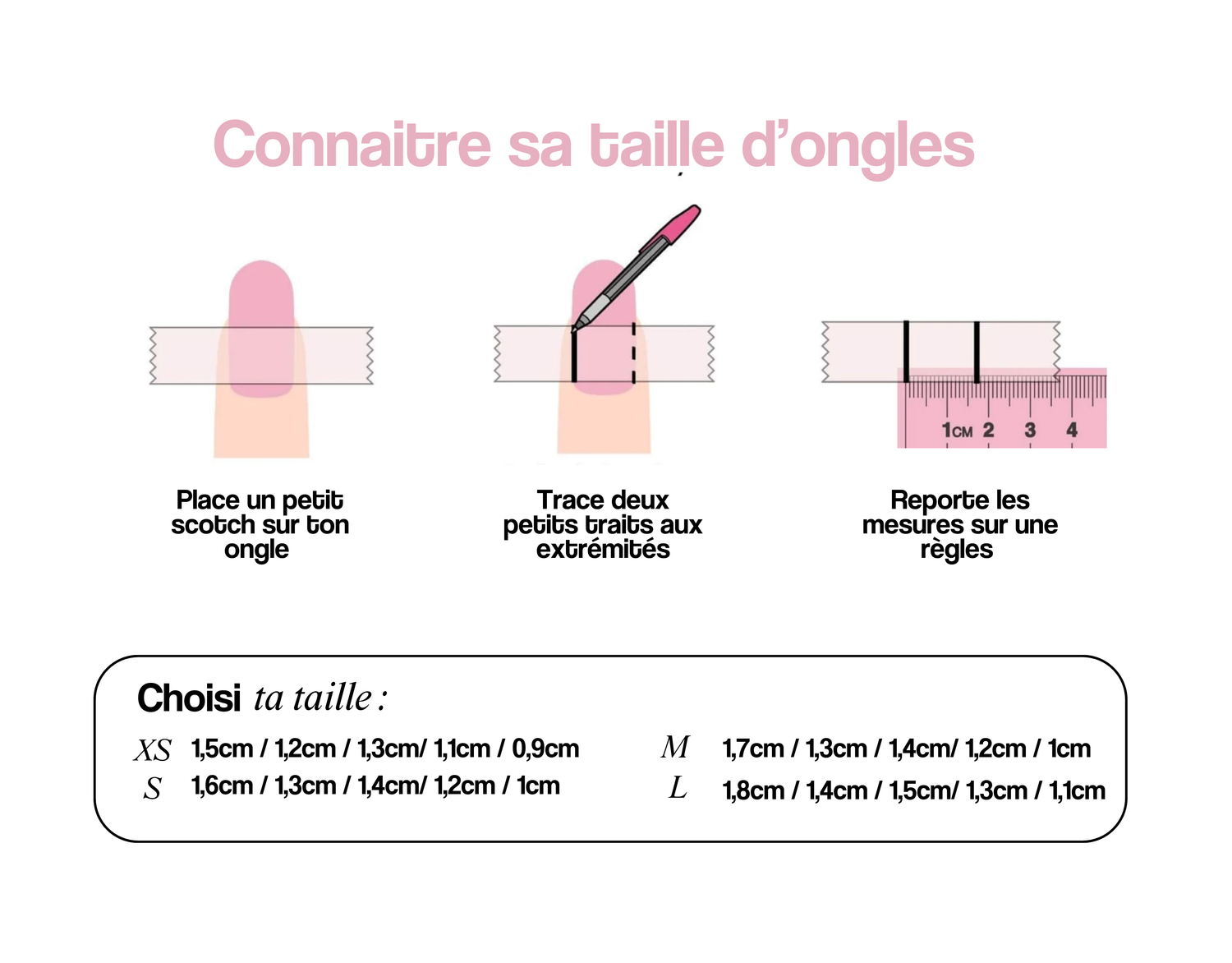 La grille de taille ne correspond pas à mes ongles