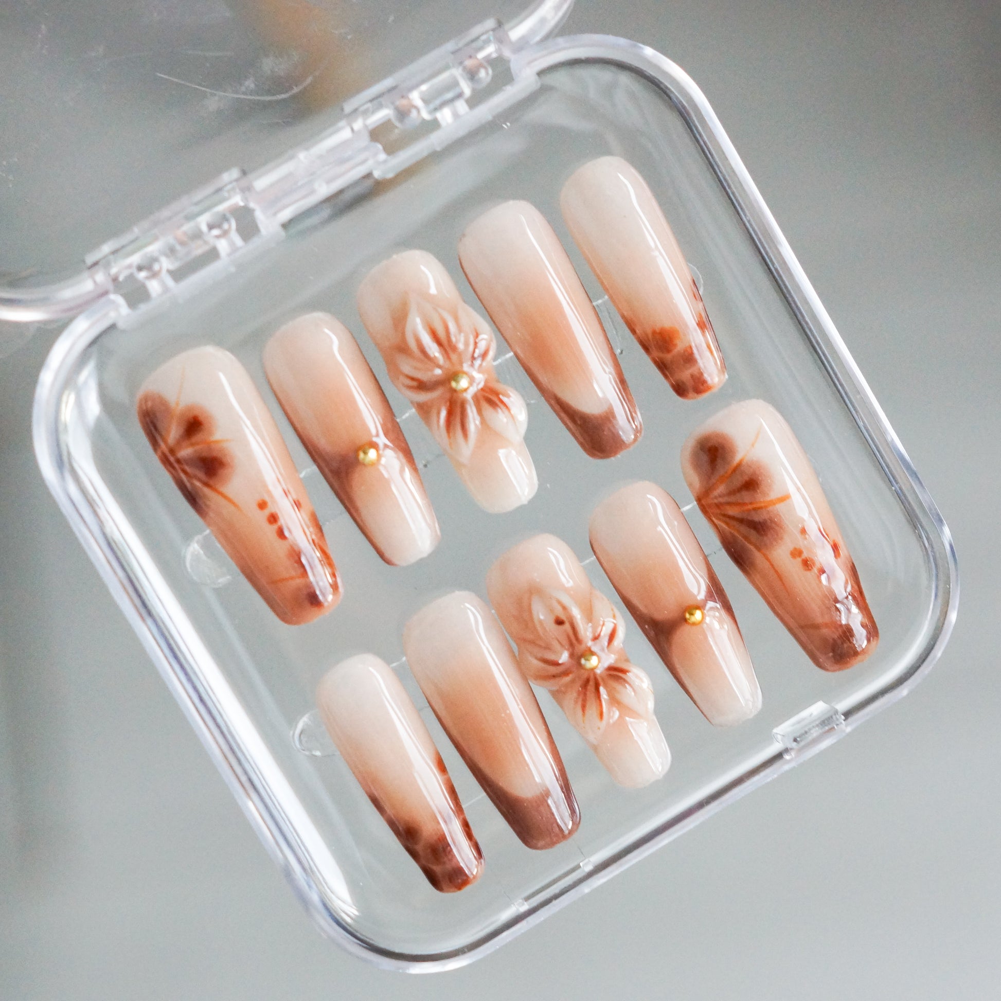 Petite note à prendre en compte : étant donné que je crée chaque set de press-on-nails à la main, il est possible que de légères variations apparaissent dans les designs. Parfois, les petits détails comme les stickers ou les motifs que je dessine peuvent légèrement varier selon la taille de l'ongle (XS, S, M, L). Rassure-toi, ces ajustements seront faits avec soin pour préserver l'univers artistique et le look général du set ! Rien ne change vraiment, juste des petites adaptations pour que tout soit parfait sur tes ongles. 😊